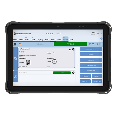Aplikace je především určená pro operátory ve výrobě jako "kiosek" pro on-line evidenci průběhu výroby.