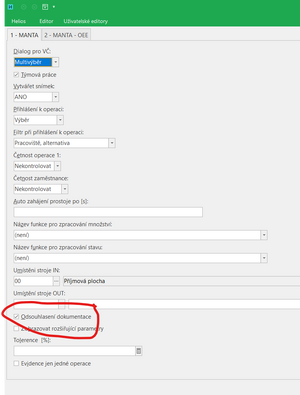 - Rozšířená evidence - speciální způsob evidence , kde je možné tisknutí štítku a vypořádání výrobního příkazů při poslední evidenci. Přednastavení dialogu je možné v konfiguraci WS.